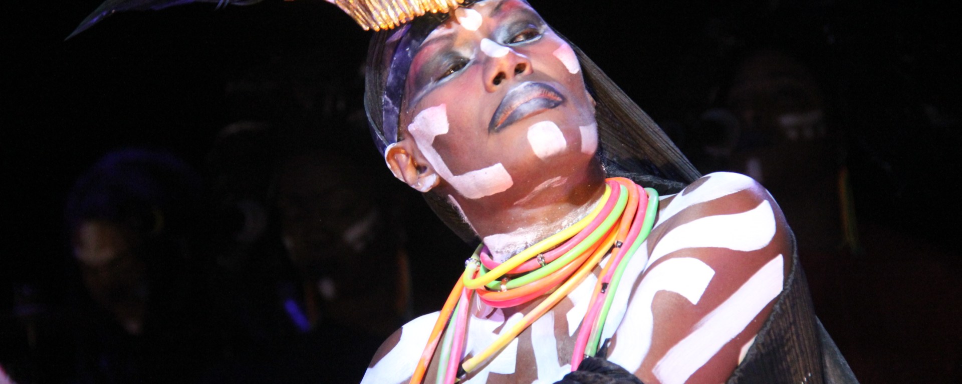 Houveram diversas trocas de roupas sempre por cima da pintura corporal, mais sempre mantendo os seios a mostra.
