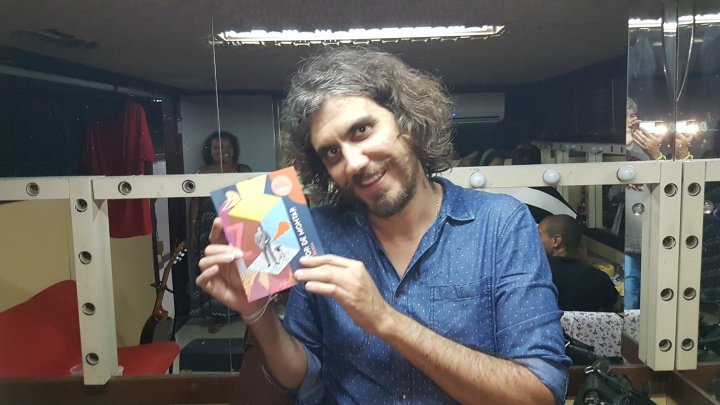O ator, após o show, recebeu em seu camarim amigos e familiares onde autografava o livreto.