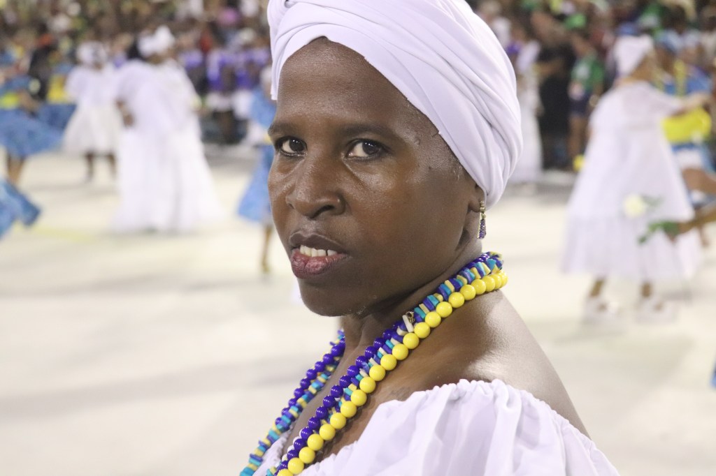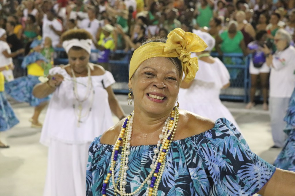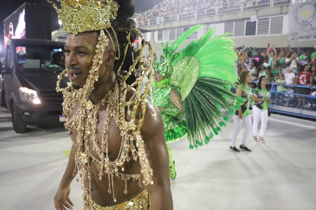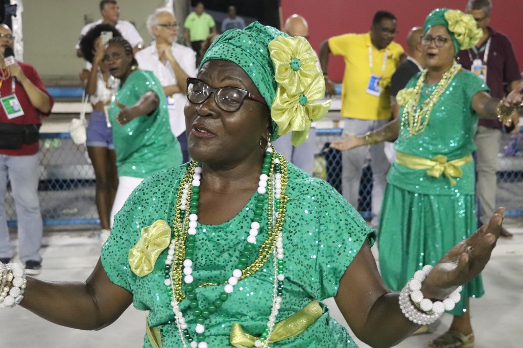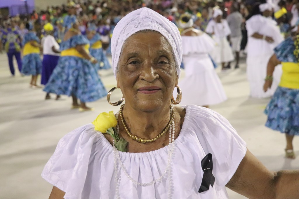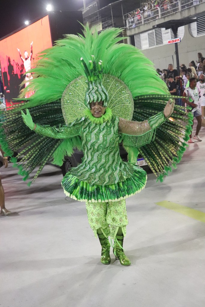 E por falar em tradição a pós a apresentação do casal de mestre sala e porta bandeira, fomos perguntar a outra imperiana nata ganhadora de 2 Estandartes de Ouro como porta bandeira, claro pelo Império Serrano, a diva Rita Freitas,que recentemente foi homenageada na Calçada Bamba do Samba num bar da Tijuca.