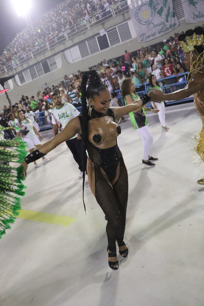 Para ver o nível a musa da escola já fora Rainha do carnaval e veio linda no melhor conceito de beleza natural e o menos é mais, e como todos os componetes com muito samba no pé e animação.