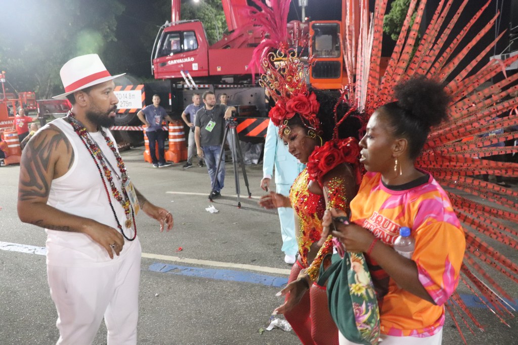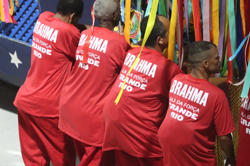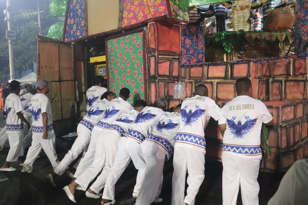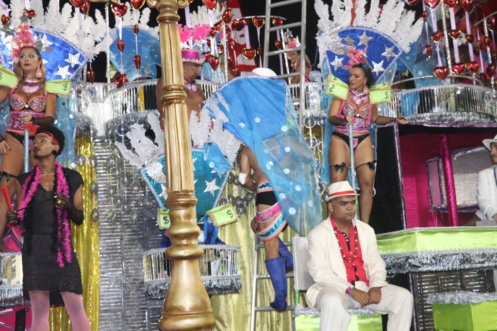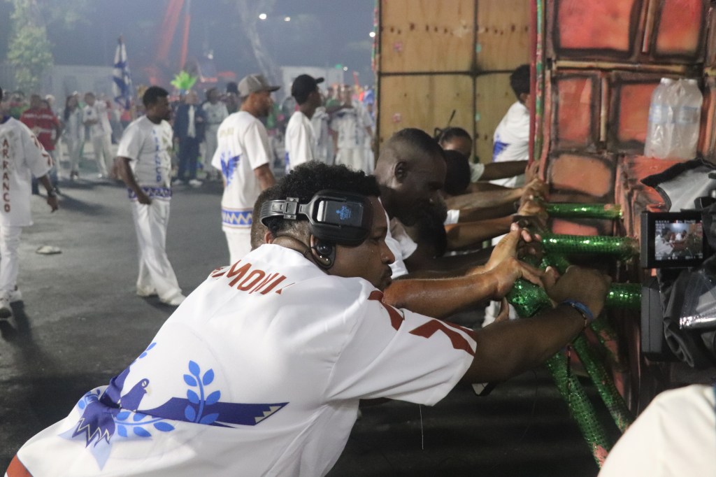Enquanto as escolas desfilam, há um desfile paralelo, com trabalhadores uniformizados que demarcam bem seu lugar na passarela do samba para um Carnaval que gera energia, movimenta a economia, extravasa alegria, mas demarca territórios e afirma as diferenças também.