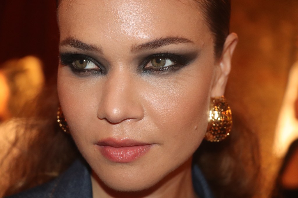 Um make forte marcando bem os olhos.