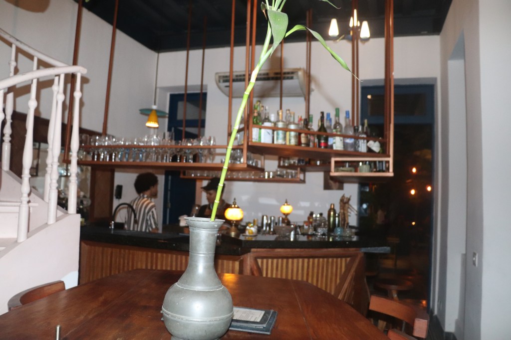 E toda pizza pede uma bebida e descobrimos que não só de vinhos ou guaraná se vive, pelo menos foi o que o chefe de bar(barman)nos contou.