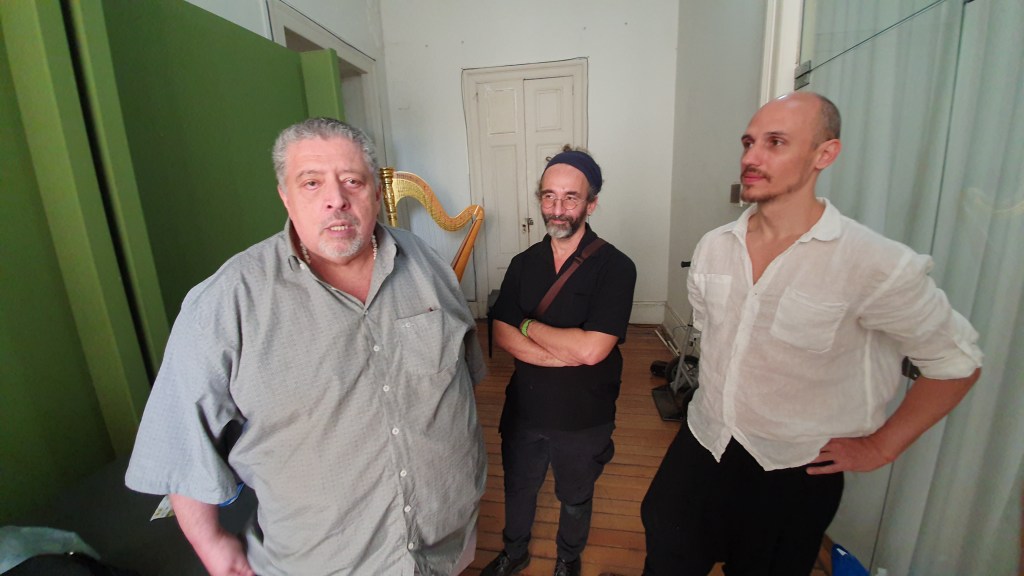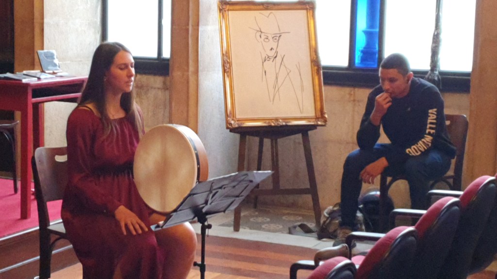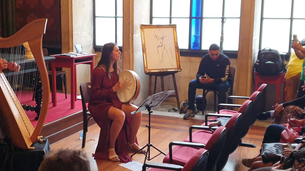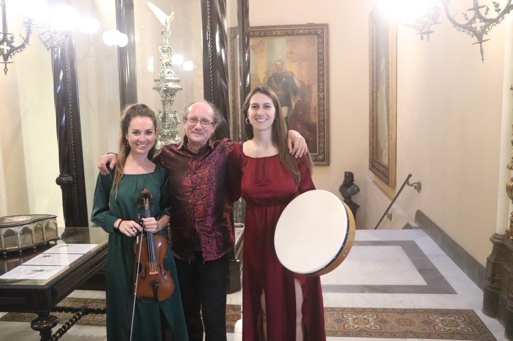 Ainda no Real Gabinete tivemos outro concerto que nos remeteram as florestas frias Iirlandesas, terras dos doentes e gnomos era a hora do grupo Euron Ensmble formado por Eurico Euron, na harpa céltica, Sara Cesano no violino e Fabiana Turello, voz e percursão.Todos do norte da Itália.