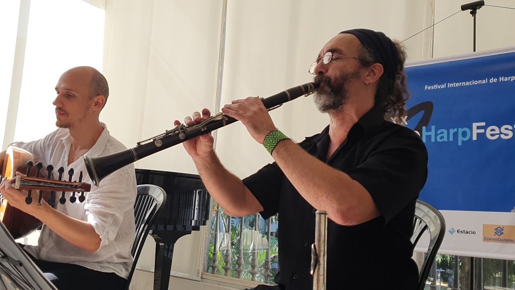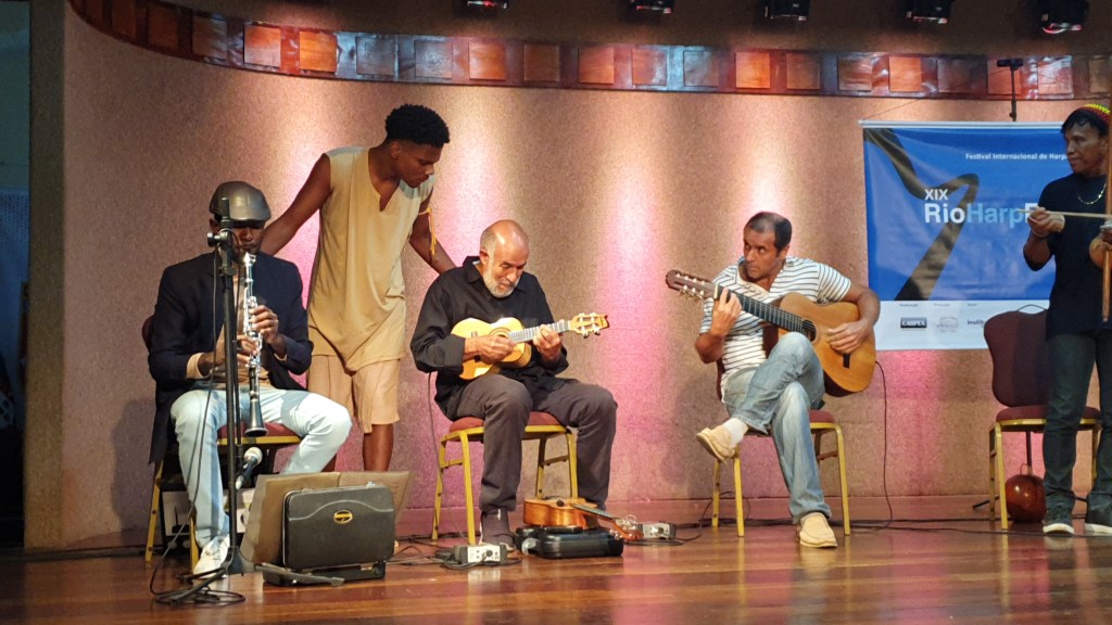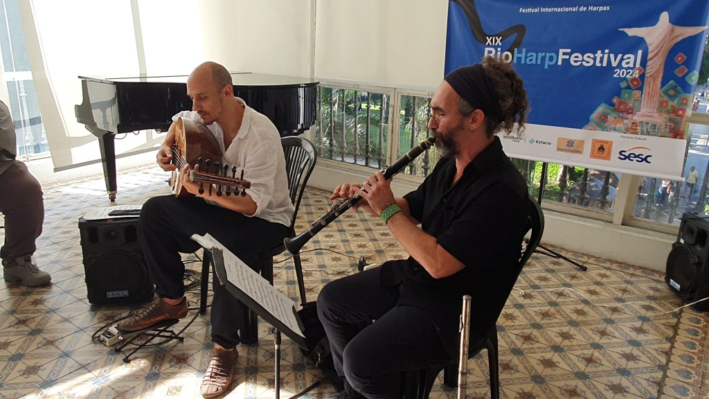 Começamos com música muçulmana e seu Alaúde, que representa a harpa árabe, tivemos também os sons animados do jazz de New Orleans,fomos presenteados com as música dos duendes irlandeses, com a Harpa Celtica e ainda clássicos e sons folclóricos venezuelanos e ainda fomos apresentados ao novo instrumento Acavarpa(cavaquinho+harpa) e o melhor de tudo em diferentes pontos turistico e histórico da cidade maravilhosa. Vamos aos concertos