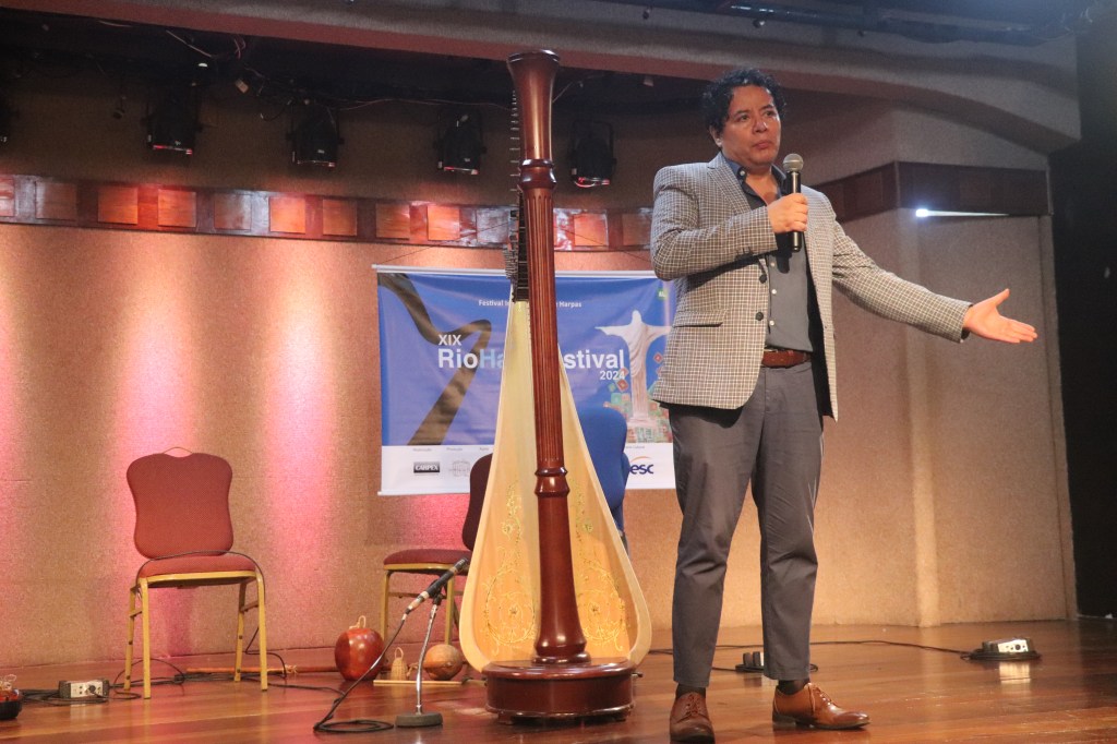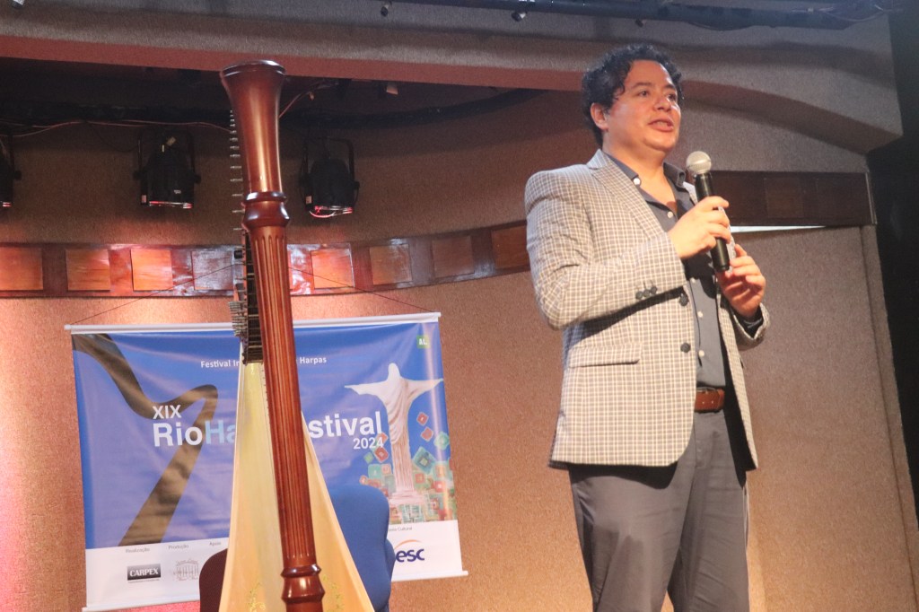 O concerto mexicano aconteceu no Forte Copacabana, que também serve como Museu Histórico do Exército Brasileiro, e no seu pronunciamento falou como é difícil tocar Mozar, pois o compositor alemão nunca fez um concerto exclusivo para harpas.