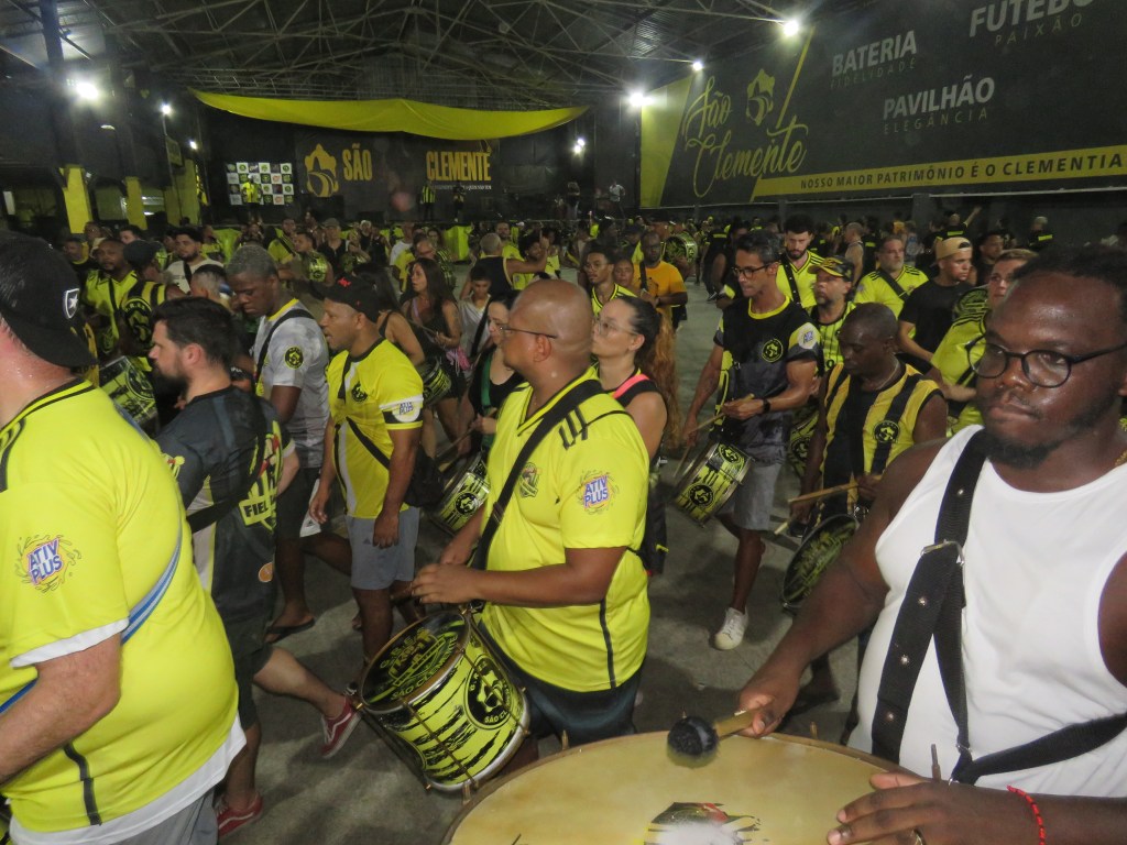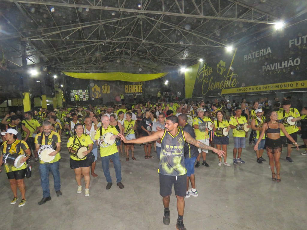 A amarelo e preto de Botafogo, Grêmio Recreativo Escola de Samba São Clemente, fez seu último ensaio geral em quadra, antes do seu ensaio de rua.