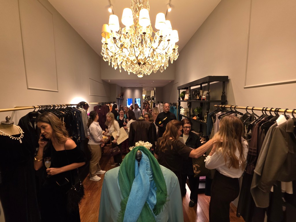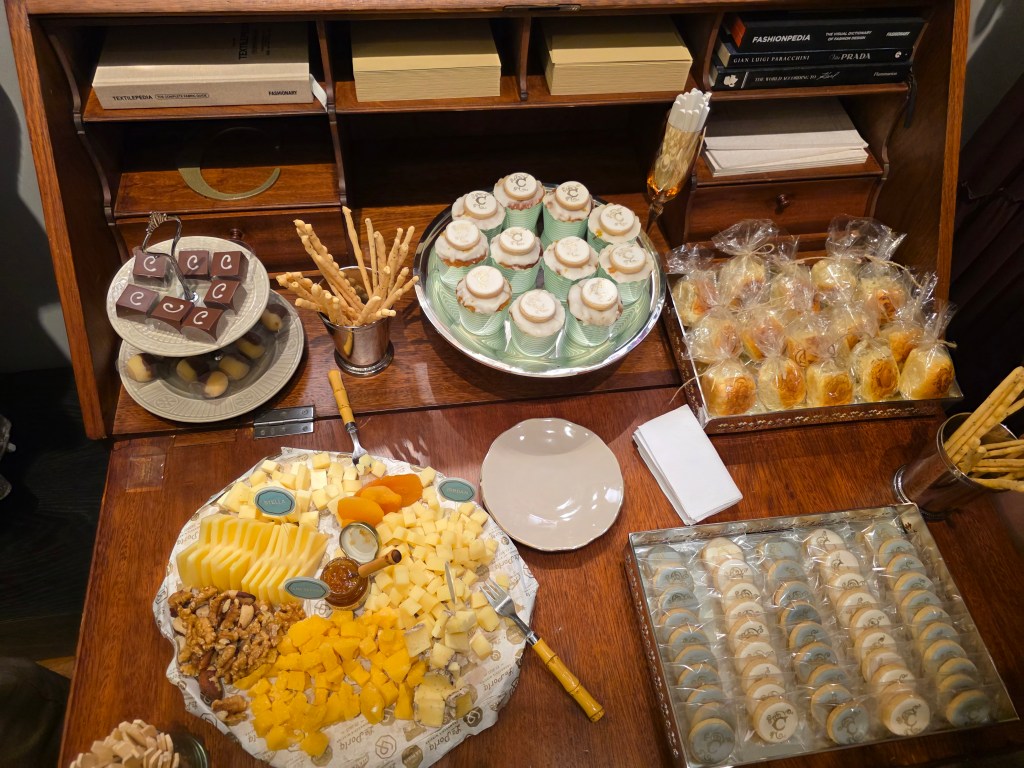 O coquetel de lançamento dessa nova coleção estava muito bem servido,para manter o estilo e combinando com a coleção foram servidos vinhos franceses da região de Bordeaux,tanto os tintos quanto o procecco. Muito chique.