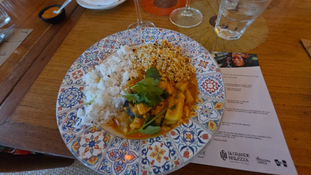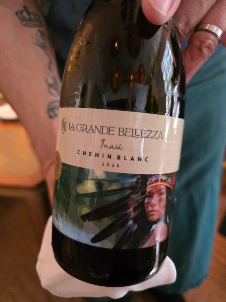 Já para os principais, a estrela da tarde o vinho que recebeu o nome de uma brava guerreira indígena de uma aldeia do interior do Pará, INAIÁ(safra 2025) um Chenin Blanc com aromas da mata, um vinho leve e novíssimo, que harmoniza muito bem com qualquer prato de frutos-do-mar.