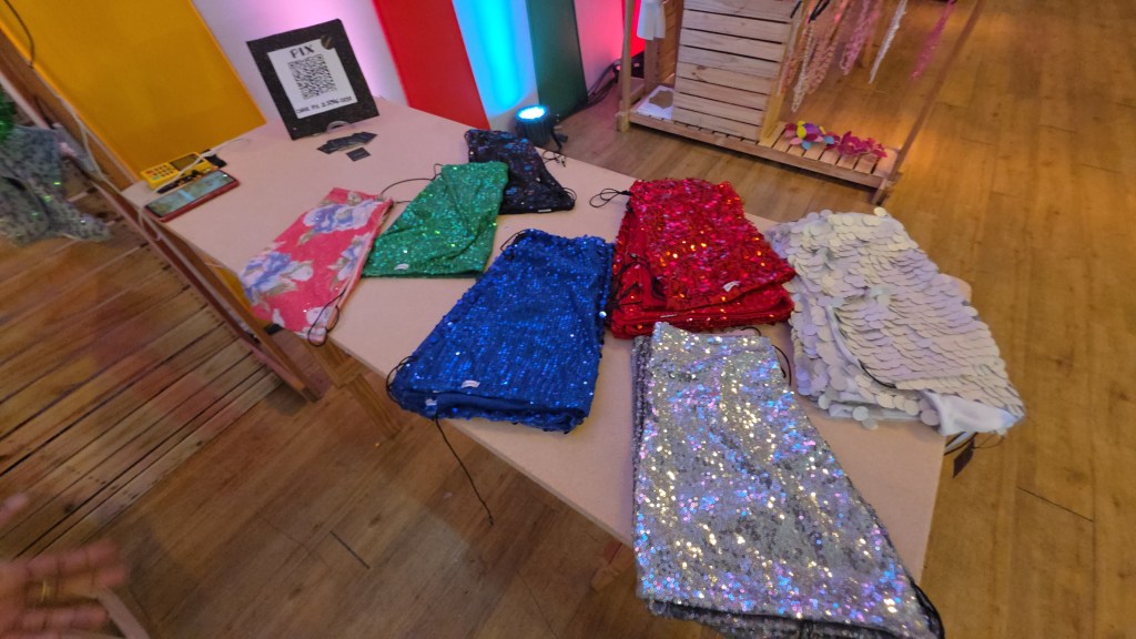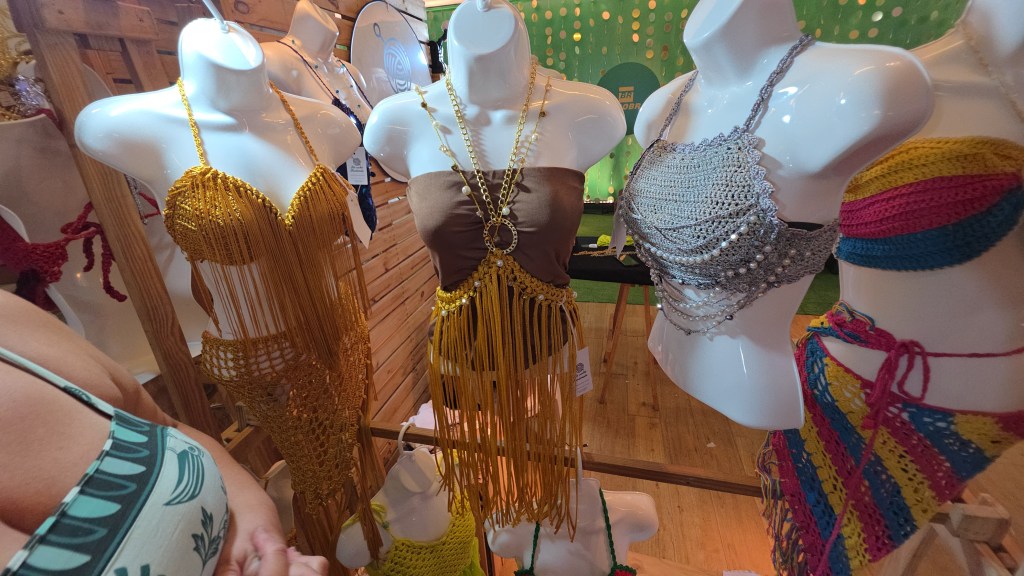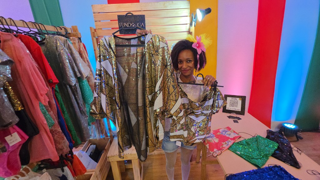 Na parte fashion, um espaço inteiro reservado a pequenos estilistas de fantasias e adereços, e de maquiagem, que fazem a alegria dos foliões