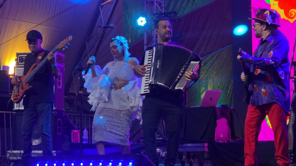 Já Fernanda Abreu, no seu melhor estilo, misturou o samba com o funk e fez a multidão cantar e dançar ao som de seus hits.