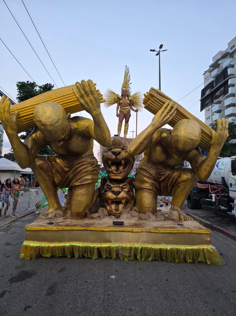 A escola ainda recebeu um belíssimo reforço, digamos um Real reforço que veio como musa, a passista consagrada Thay Rodrigues, premiadíssima, já foi a Rainha do carnaval carioca, musa do Cordão do Bola Preta, já foi rainha de bateria da Em Cima da Hora, passista da Imperatriz Leopoldinense e musa da União de Maricá(campeã da Série Ouro 26).