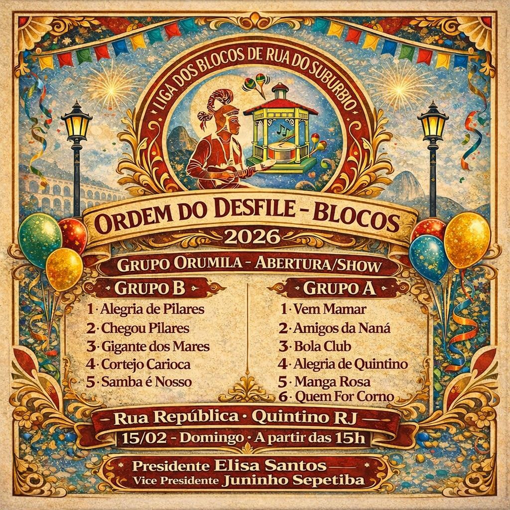 Muito boa a iniciativa da Sambúrbio de preservar as tradições do bairro. A coluna agradece ao convite e credenciamento nos feito pela própria presidente Elisa Santos e aplaude a todos o participantes. E que venha 2027.