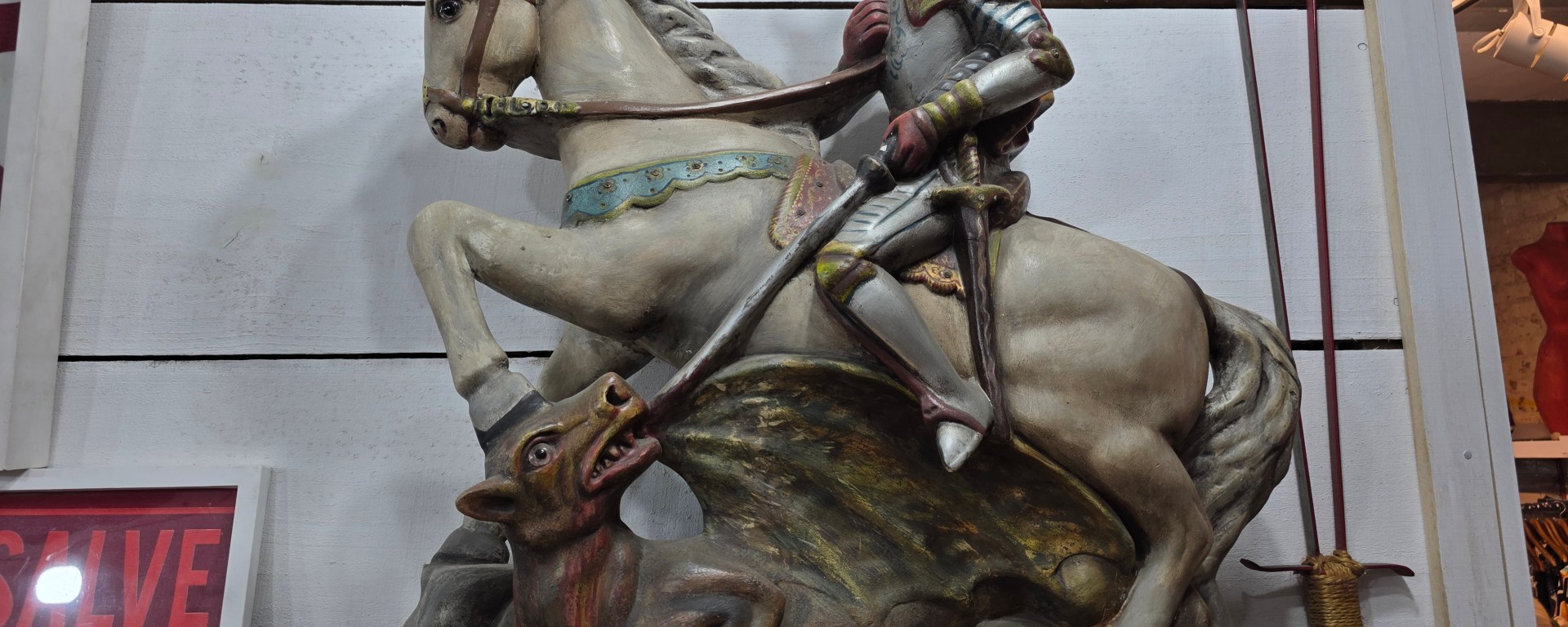Símbolos religiosos também adornam acessórios como canecas, guias e na decoração da loja e se mistura com o profano.