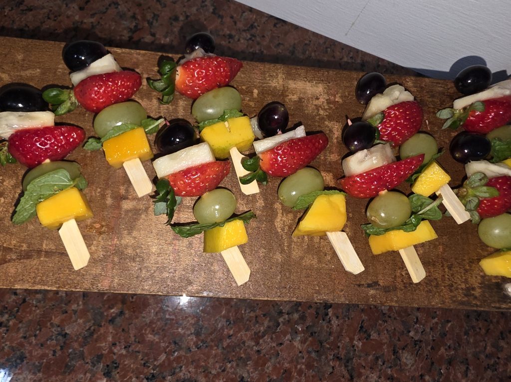 Como todo coquetel que temos comidinhas e bebidas fomos direto a fonte ou melhor a Chef e descobrimos que nossa artista maravilhosa é vegana. O que deu um trabalho maior a cozinha pois tiveram que trocar imediatamente o cardápio escolhido. A saber que a dieta vegana exclui estritamente todos os produtos de origem animal (carnes, laticínios, ovos, mel).