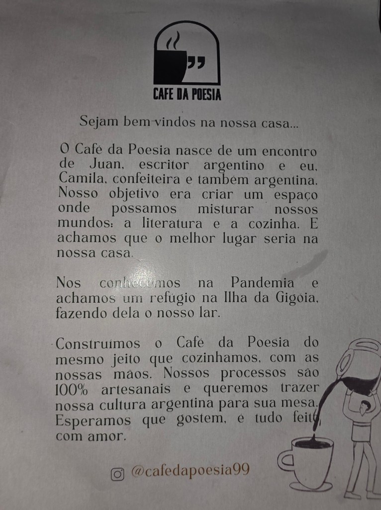 A procissão cultural se iniciou no bistrõ Café da Poesia, local que une gastronomia e poesia afinal o casal proprietário ele é poeta e roteirista e ela uma chef renomada, ambos argentinos.